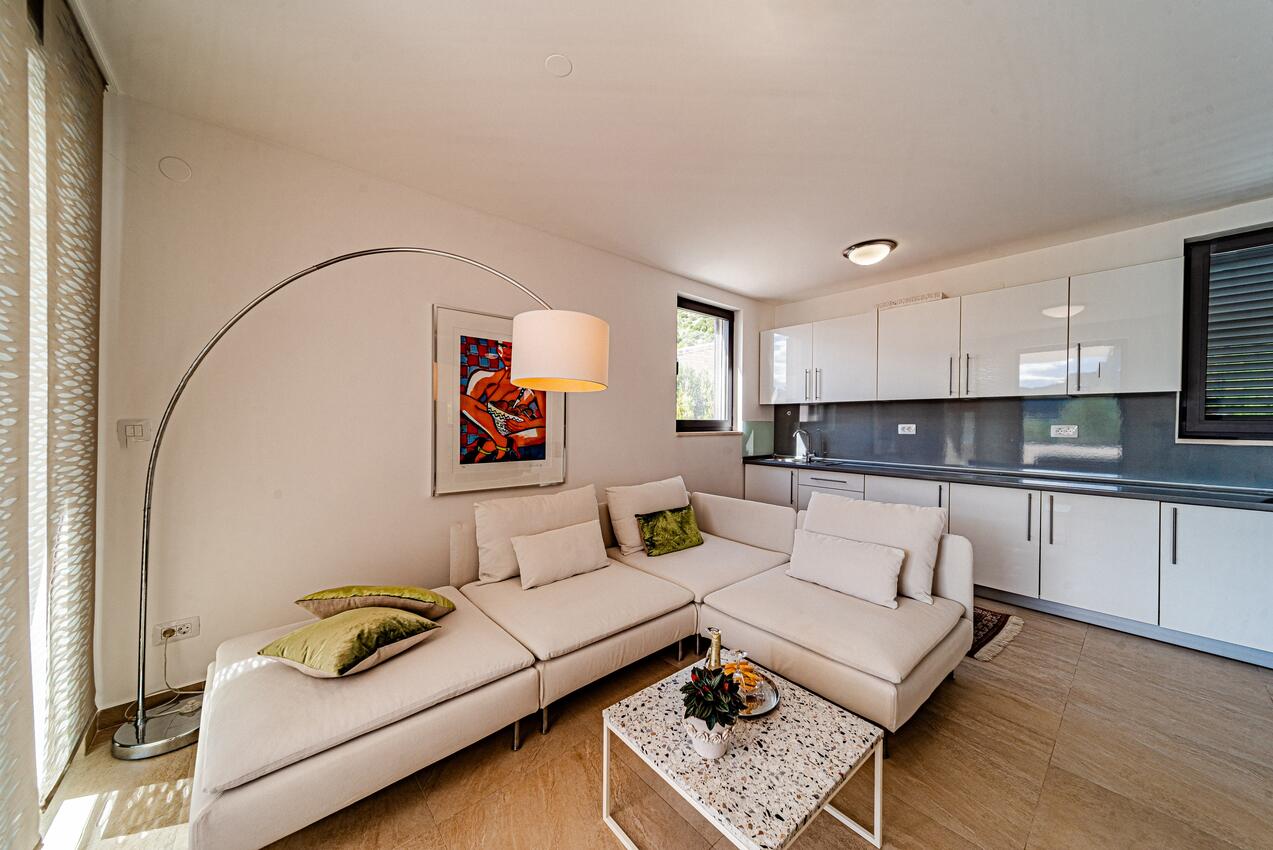 Ferienwohnung bietet Platz für 2 Gäste. Die Betten sind in Schlafzimmern, die es 1 gibt, innerhalb einer Gesamtfläche von 44m2, angeordnet. Die Gäste haben eine eigene Terrasse zur Verfügung, auf der sie in warmen Sommernächten genießen können. Das Apartment bietet Meerblick. Es ist erlaubt, Speisen auf dem Gemeinschafts-Grill vorzubereiten.