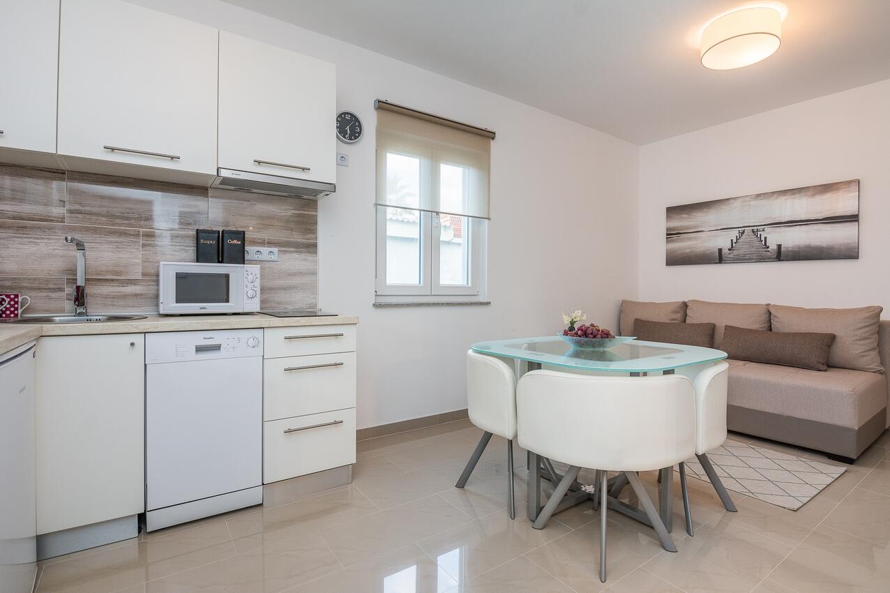 Ferienwohnung bietet Platz für 4 Gäste. Die Betten sind in Schlafzimmern, die es 1 gibt, und in Wohnzimmer, innerhalb einer Gesamtfläche von 45m2, angeordnet. Die Gäste haben eine eigene Terrasse zur Verfügung, auf der sie in warmen Sommernächten genießen können. Es ist erlaubt, Speisen auf dem Gemeinschafts-Grill vorzubereiten. In der gebuchten Unterkunftseinheit zahlt man am Ort ein Depositum ( der Preis ist an der Internetseite angeführt ).