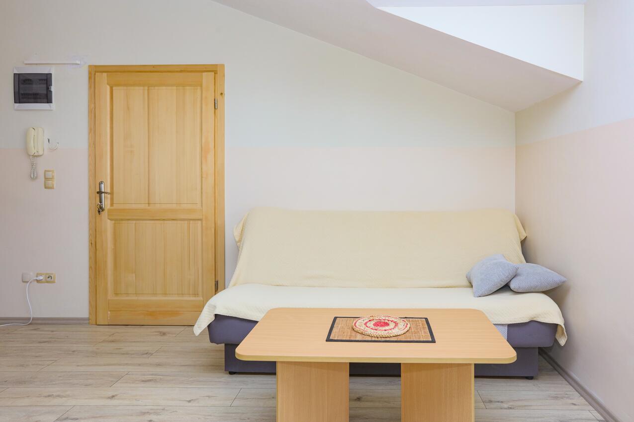 Ferienwohnung bietet Platz für 6 Gäste. Die Betten sind in Schlafzimmern, die es 2 gibt, und in Wohnzimmer, innerhalb einer Gesamtfläche von 57m2, angeordnet. Die Gäste haben einen eigenen Balkon zur Verfügung, auf der sie in warmen Sommernächten genießen können. Es ist erlaubt, Speisen auf dem Gemeinschafts-Grill vorzubereiten. In der Unterkunftseinheit besteht die Möglichkeit des Mitbringens von Haustieren, und die Dienstleistung ist im Preis der Unterkunft enthalten.