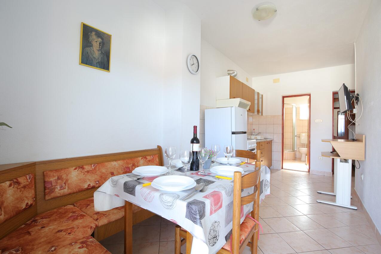 Ferienwohnung bietet Platz für 5 Gäste. Die Betten sind in Schlafzimmern, die es 2 gibt, innerhalb einer Gesamtfläche von 42m2, angeordnet. Die Gäste haben einen eigenen Balkon zur Verfügung, auf der sie in warmen Sommernächten genießen können. Das Apartment bietet Meerblick. Es ist erlaubt, Speisen auf dem Gemeinschafts-Grill vorzubereiten. In der Unterkunftseinheit besteht die Möglichkeit des Mitbringens von Haustieren gegen Aufpreis.