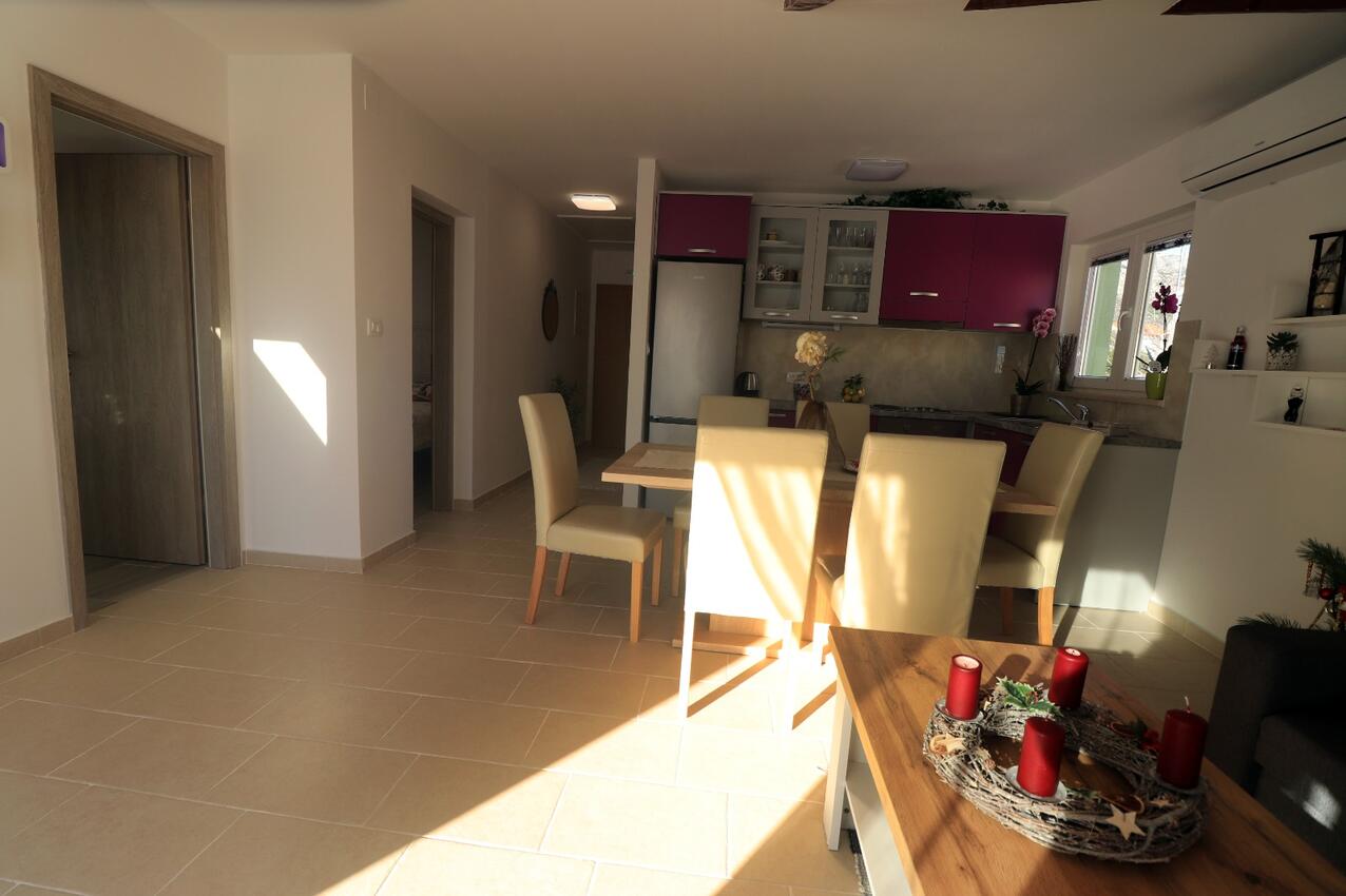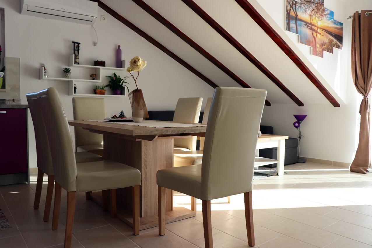 Ferienwohnung bietet Platz für 6 Gäste. Die Betten sind in Schlafzimmern, die es 2 gibt, und in Wohnzimmer, innerhalb einer Gesamtfläche von 62m2, angeordnet. Die Gäste haben eine eigene Terrasse zur Verfügung, auf der sie in warmen Sommernächten genießen können. Das Apartment bietet Meerblick. Es ist erlaubt, Speisen auf dem Gemeinschafts-Grill vorzubereiten. In der Unterkunftseinheit besteht die Möglichkeit des Mitbringens von Haustieren gegen Aufpreis.
