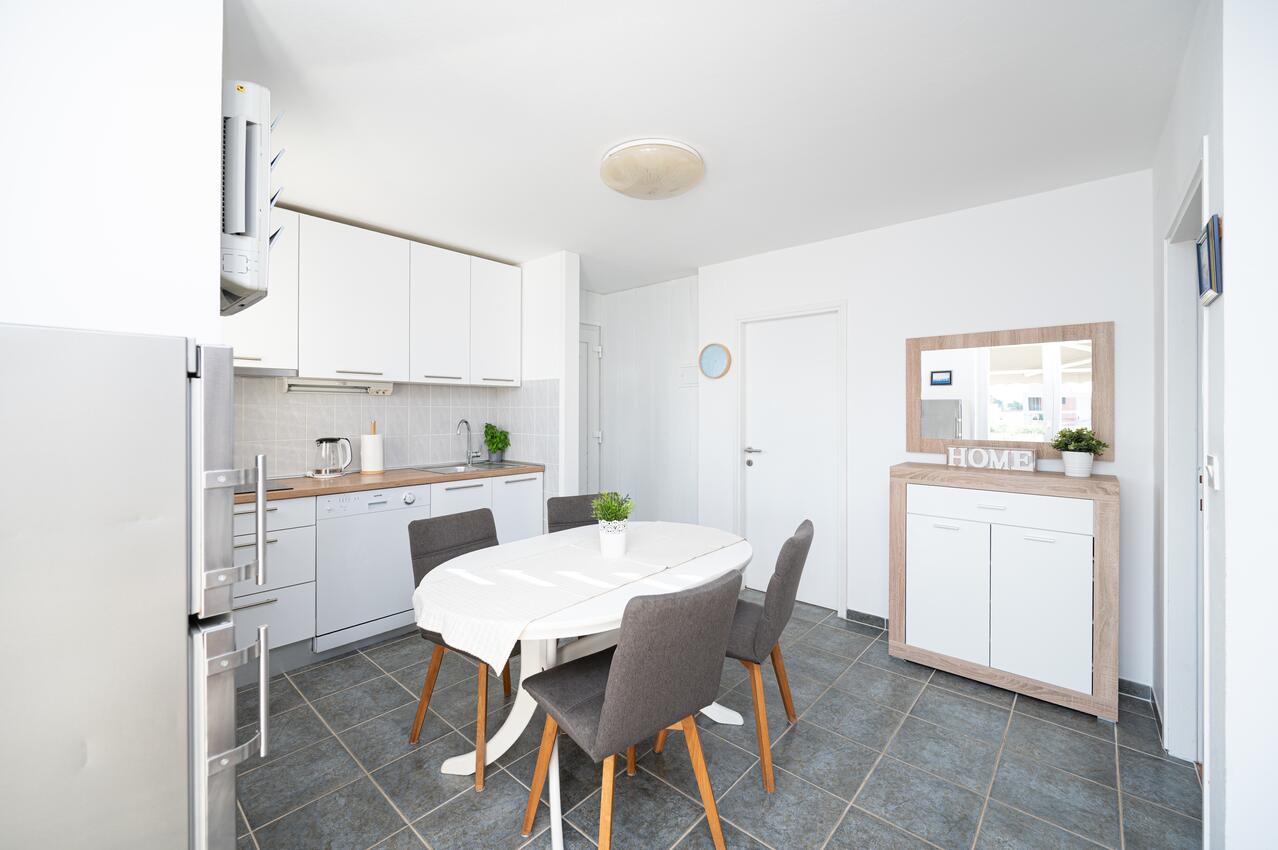 Ferienwohnung bietet Platz für 4 Gäste. Die Betten sind in Schlafzimmern, die es 2 gibt, innerhalb einer Gesamtfläche von 34m2, angeordnet. Die Gäste haben eine eigene Terrasse zur Verfügung, auf der sie in warmen Sommernächten genießen können. Das Apartment bietet Meerblick. Es ist erlaubt, Speisen auf dem Gemeinschafts-Grill vorzubereiten. In der Unterkunftseinheit besteht die Möglichkeit des Mitbringens von Haustieren gegen Aufpreis.