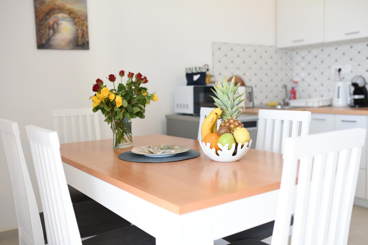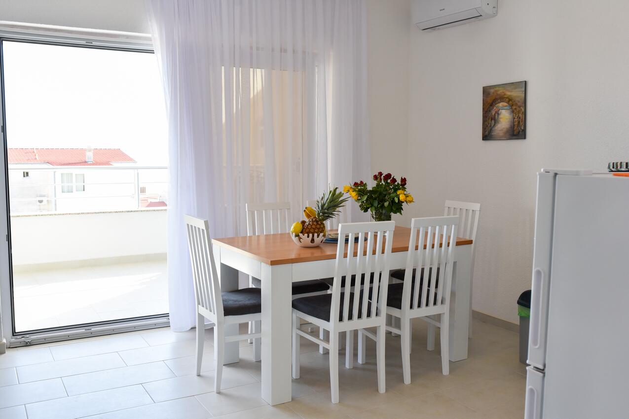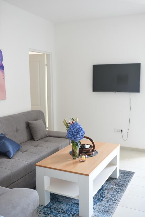 Ferienwohnung bietet Platz für 8 Gäste. Die Betten sind in Schlafzimmern, die es 3 gibt, und in Wohnzimmer, innerhalb einer Gesamtfläche von 75m2, angeordnet. Die Gäste haben eine eigene Terrasse zur Verfügung, auf der sie in warmen Sommernächten genießen können. Das Apartment bietet Meerblick. Für vollen Genuss und Entspannung gibt es einen privaten Grill für Gäste dieser Unterkunft. In der Unterkunftseinheit besteht die Möglichkeit des Mitbringens von Haustieren, und die Dienstleistung ist im Preis der Unterkunft enthalten.