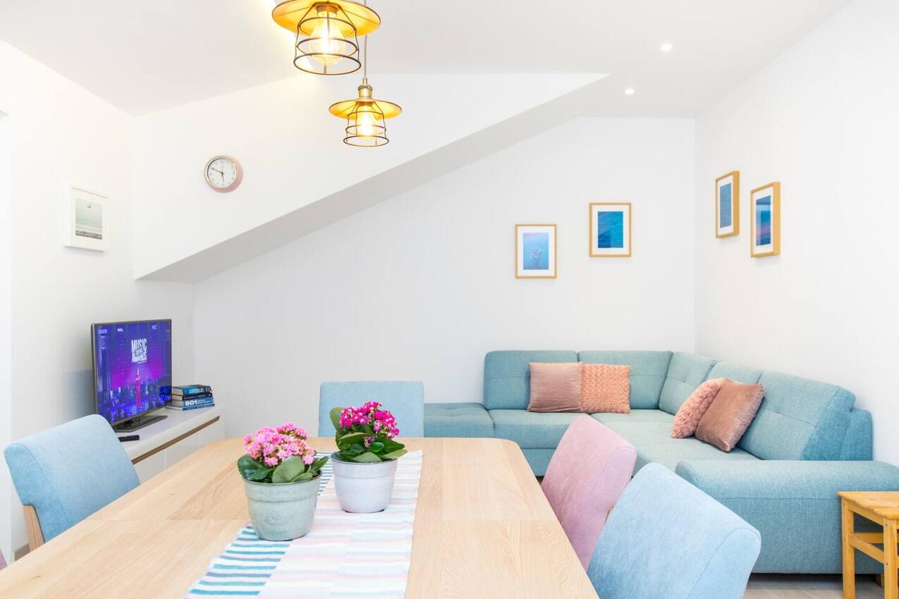 Haus bietet Platz für 10 Gäste. Die Betten sind in Schlafzimmern, die es 5 gibt, innerhalb einer Gesamtfläche von 170m2, angeordnet. Die Gäste haben eine eigene Terrasse zur Verfügung, auf der sie in warmen Sommernächten genießen können. Das Haus bietet Meerblick. Für vollen Genuss und Entspannung gibt es einen privaten Grill für Gäste dieser Unterkunft. Während ihres Aufenthalts können Gäste das gemeinsam zur Nutzung stehende Schwimmbad benutzen.