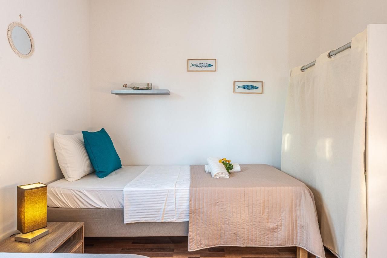 Diese ansprechende Ferienwohnung erstreckt sich über 55 Quadratmeter im ersten Stock und bietet eine behagliche Unterkunft für bis zu vier Personen. Das helle und freundliche Interieur wird durch zwei gut ausgestattete Schlafzimmer ergänzt: Das eine mit einem komfortablen Doppelbett und einer praktischen Kommode, das andere mit zwei Einzelbetten, ideal für Familien oder Freunde.