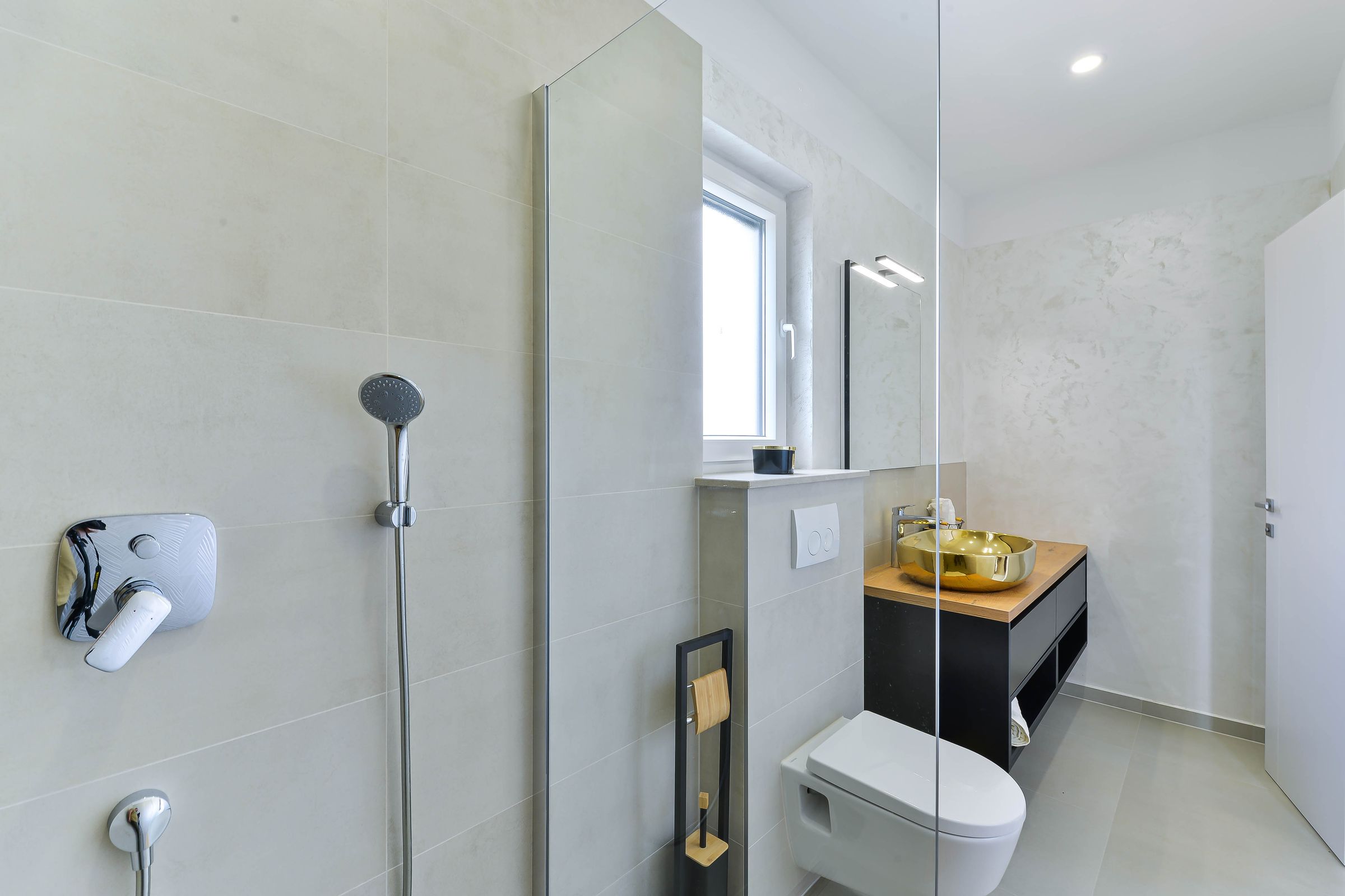 Die stilvolle Unterkunft verfügt über vier geräumige Schlafzimmer, jedes mit eigenem Bad und Balkonzugang – ideal für Privatsphäre und Komfort. Ein zusätzliches Gäste-WC im Erdgeschoss sorgt für noch mehr Bequemlichkeit. Zudem bietet eine ausziehbare Schlafcouch Platz für zwei weitere Personen und sorgt so für zusätzliche Flexibilität bei der Unterkunft.