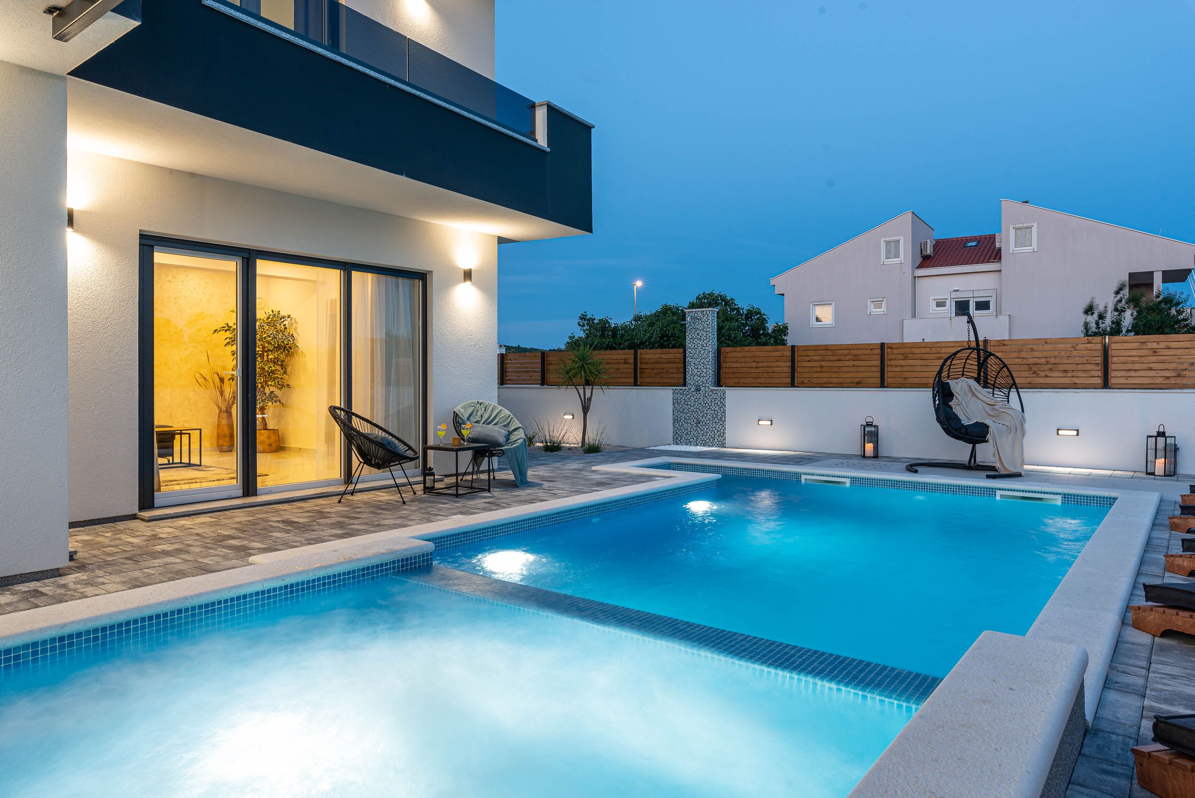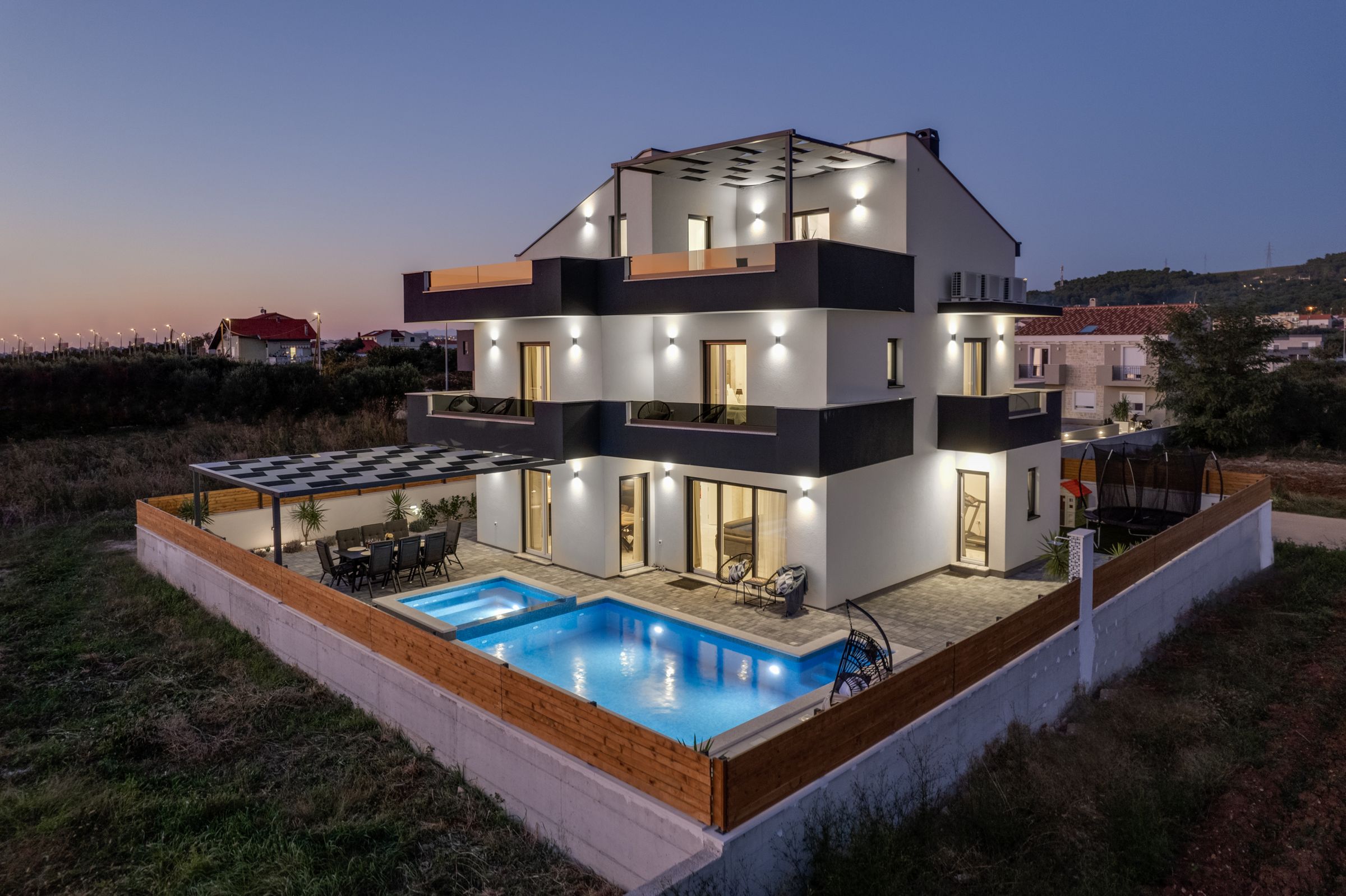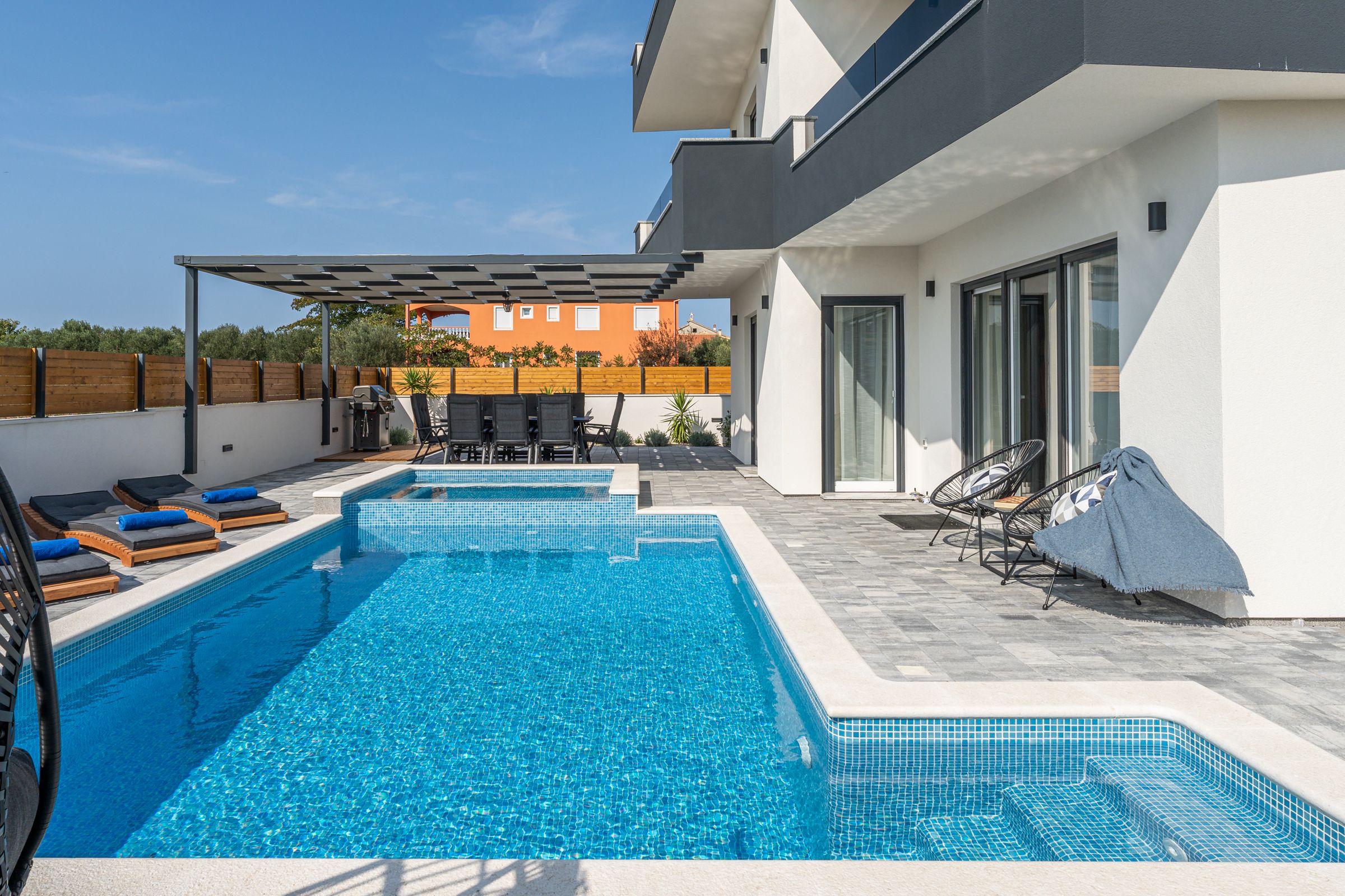 Diese exklusive 240 m² große Villa in Bibinje bei Zadar bietet alles, was Sie für einen traumhaften Urlaub brauchen. Genießen Sie den großzügigen beheizten Whirlpool-Pool und Jacuzzi (35 m²) und lassen Sie sich von der Sonne verwöhnen. Ob ein erfrischendes Bad oder pure Entspannung – hier ist beides garantiert!