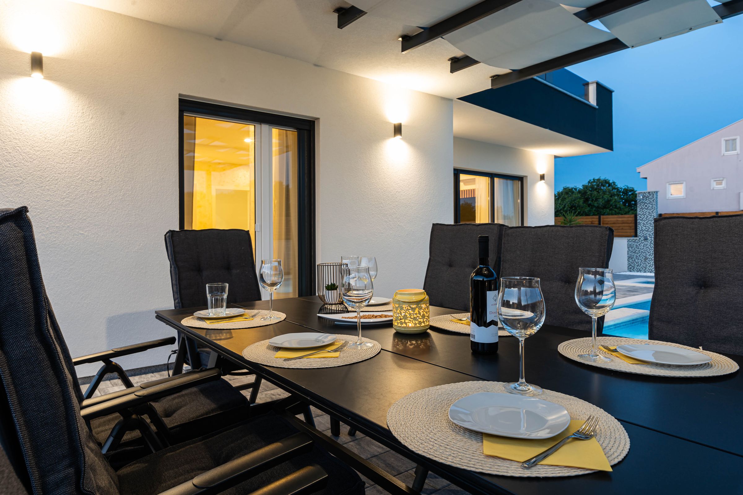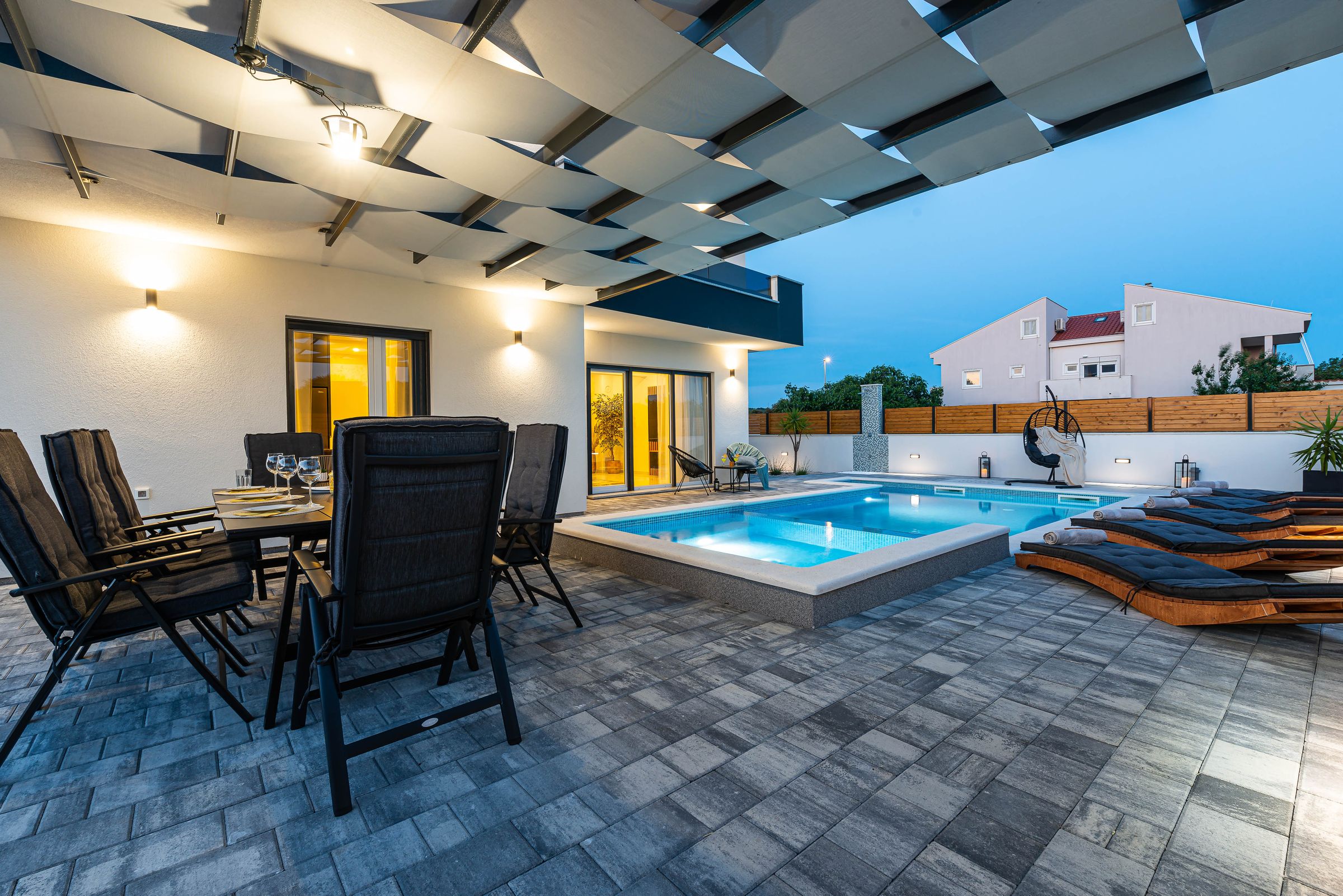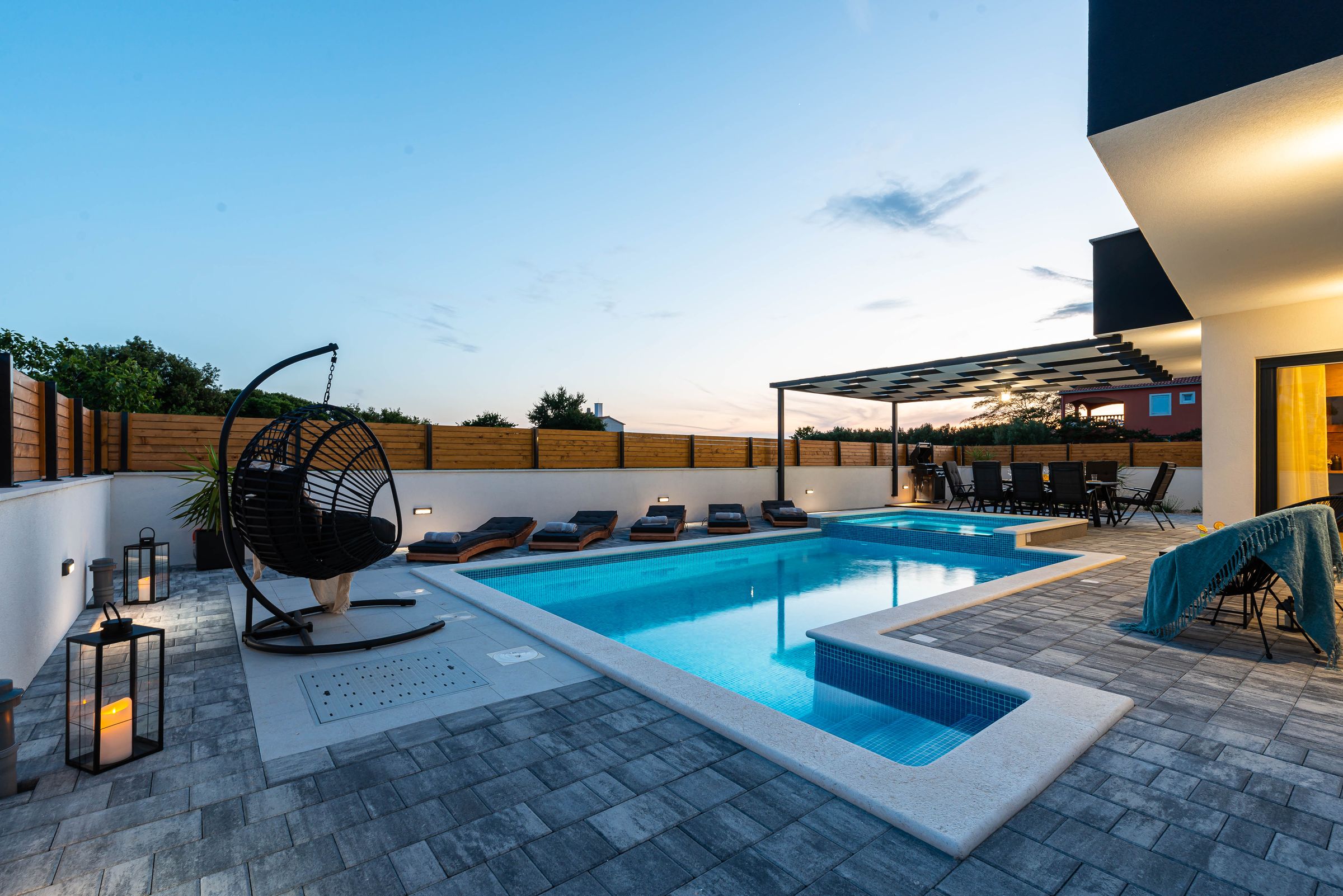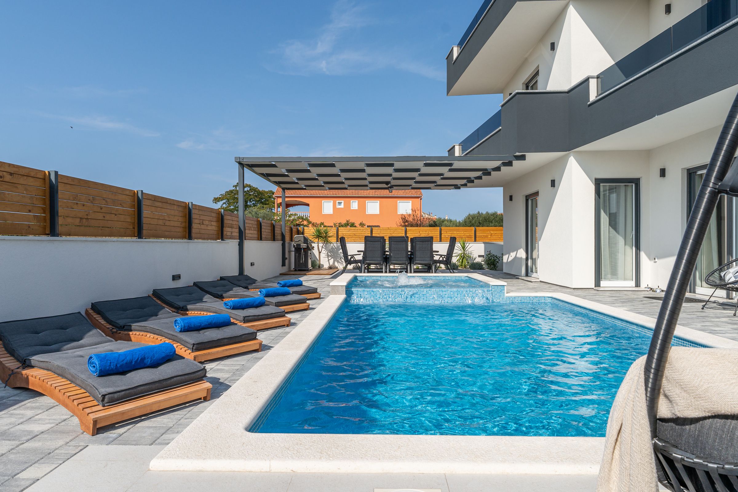 Diese exklusive 240 m² große Villa in Bibinje bei Zadar bietet alles, was Sie für einen traumhaften Urlaub brauchen. Genießen Sie den großzügigen beheizten Whirlpool-Pool und Jacuzzi (35 m²) und lassen Sie sich von der Sonne verwöhnen. Ob ein erfrischendes Bad oder pure Entspannung – hier ist beides garantiert!