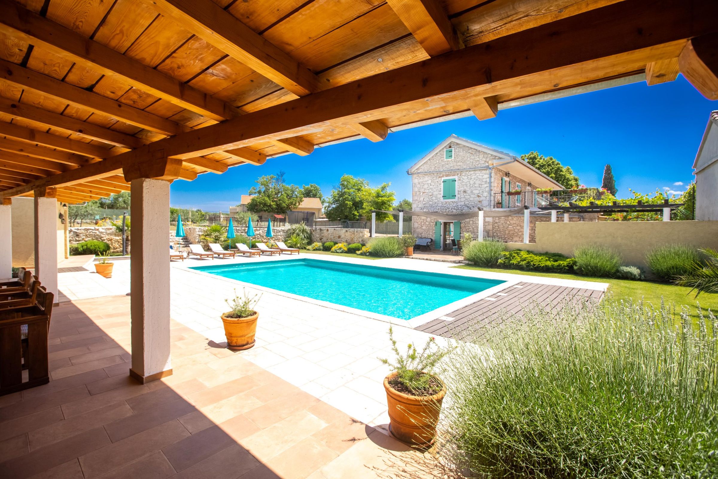 einem gepflegten Garten, bietet Ihnen absolute Erholung und Privatsphäre. Die traumhaften Strände und das lebhafte Zentrum von Biograd na Moru erreichen Sie in nur wenigen Minuten mit dem Auto. Erleben Sie Komfort, Luxus und vielfältige Freizeitmöglichkeiten in der Villa Božini Dvori, einem Ort, an dem Urlaubsträume wahr werden.