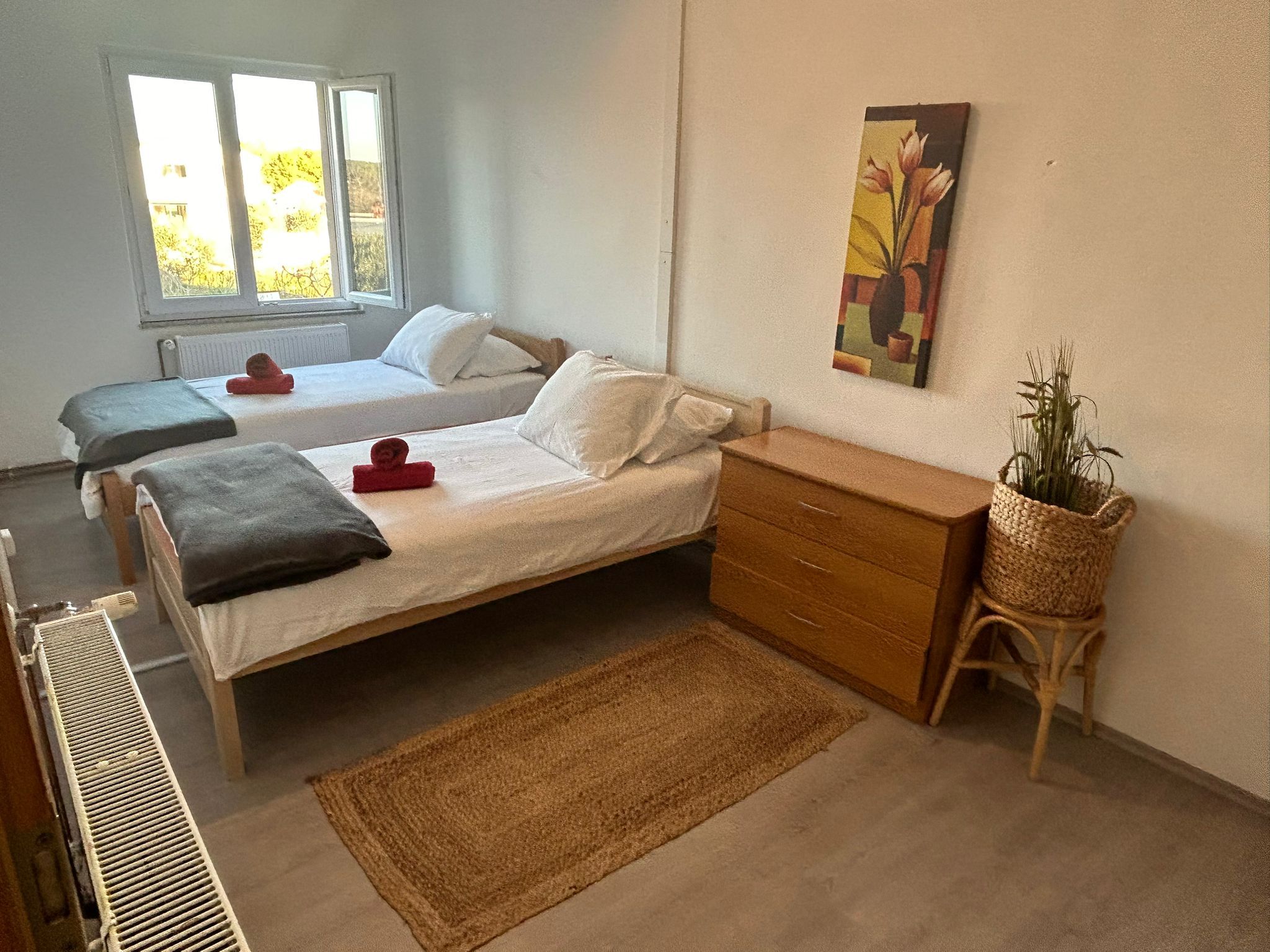 Ihnen stehen zwei separate Schlafzimmer zur Verfügung: eines mit einem gemütlichen Doppelbett, Kleiderschrank und Schreibtisch – ideal zum Zurückziehen. Vom Schlafzimmer aus erreichen Sie zudem ein weiteres, separates Arbeitszimmer mit großem Schreibtisch und komfortablem Stuhl – perfekt, wenn Sie auch im Urlaub ungestört arbeiten oder lesen möchten. Das zweite Schlafzimmer ist mit zwei Einzelbetten ausgestattet.